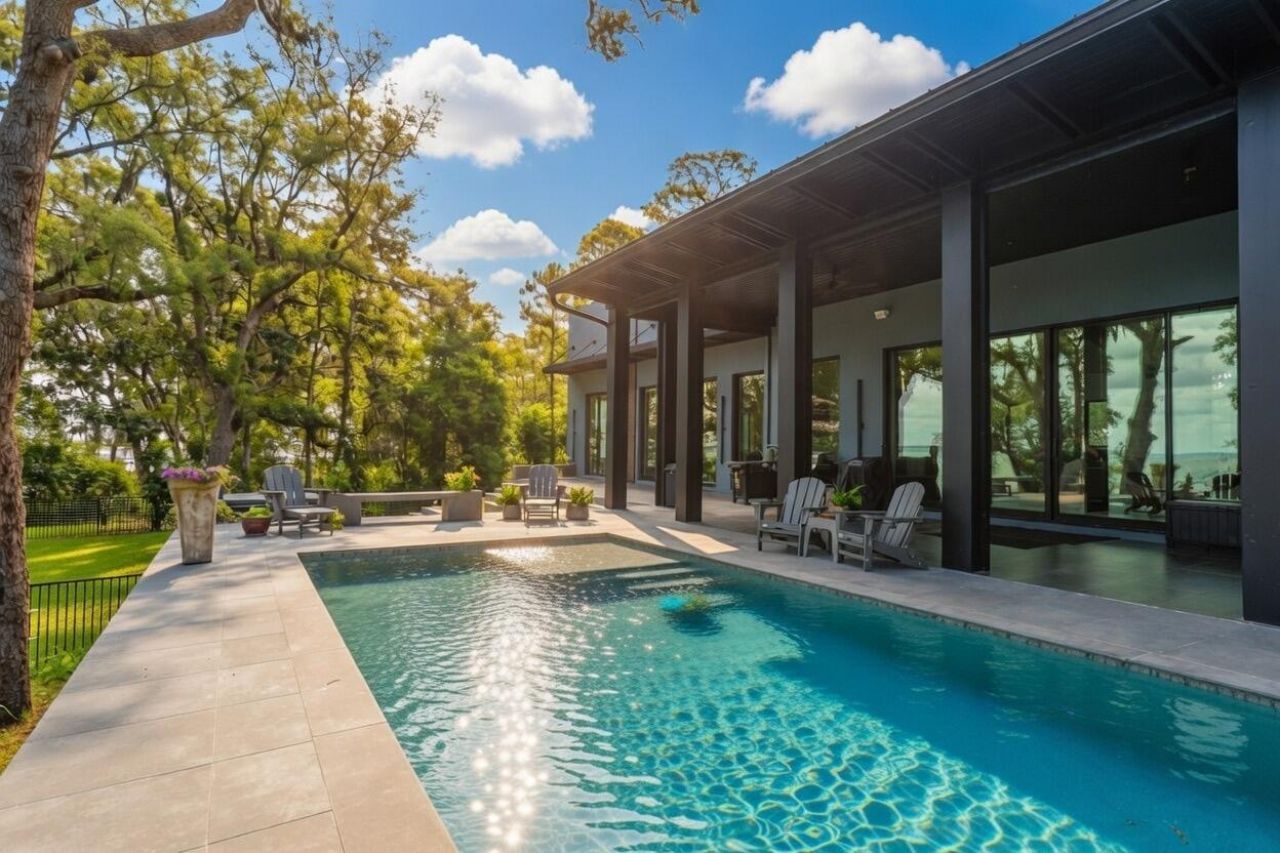 Set on two extraordinary acres, this rare bayfront estate offers exceptional privacy, scale, and presence.Positioned directly on the water, this fortress-style residence was constructed in 2023 for durability, security, and long-term ownership. The home features two bedrooms and two and one-half baths, yet lives far beyond its footprint with expansive living areas, soaring ceilings, and walls of glass capturing panoramic bay views.The primary suite is a private retreat with tranquil waterfront vistas, while guest accommodations reflect the same level of comfort and quality. Finishes throughout are thoughtfully selected, blending craftsmanship with timeless coastal design. Outdoor living is equally compelling. A waterfront pool overlooks the bay, and a private dock provides immediate access for boating, paddleboarding, and fishing. The grounds offer a level of space and privacy rarely found on bayfront property.Additional features include a solar power system for low operating costs, solar pool heating, and an impressive collection of included assets: a double-decker Triton boat, two wave runners, a Rubicon Jeep, Hobie cat pedal kayaks, and an all-glass greenhouse. Floor plans for a potential carriage house are available.This is a true waterfront estate--designed for privacy, built for strength, and positioned for generational ownership.